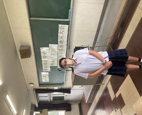 本校からは1年生の工藤葵依さんが出場しました。スピーチ順が1番目でしたが、“For…