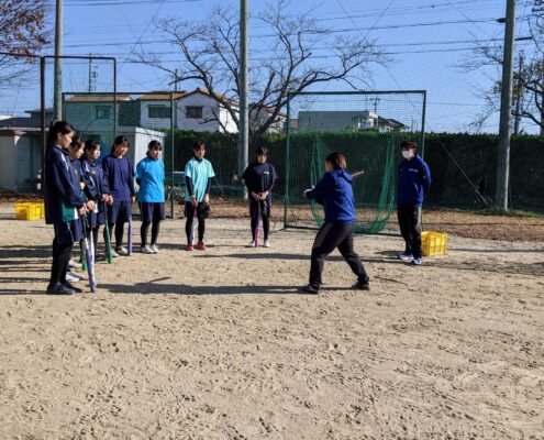 新人戦の県大会、尾張秋季選手権は初戦敗退してしまいました。その悔しさをバネに、4月の総体予選に向けてレベルアップすべく、12月10日(日)に、東海理化チェリーブロッサムズの選手の皆さんにお越しいただきました。