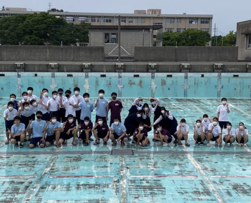 一学期中間考査終了後、1年生から3年生の水泳部員で、プール清掃を行いました。6月の総合体育大会、8月・9月の尾張選手権、新人大会に向けて、「実力を発揮」できるよう練習に取り組んでいきます!