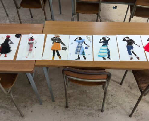 明美文化服装専門学校の講師をお迎えし、デザイン画コラージュ体験を行いました。