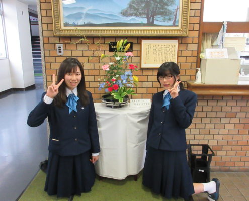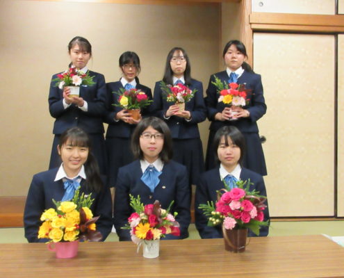 昨年同様、今年も1年・2年部員で協力して、卒業式のお花を活けました。